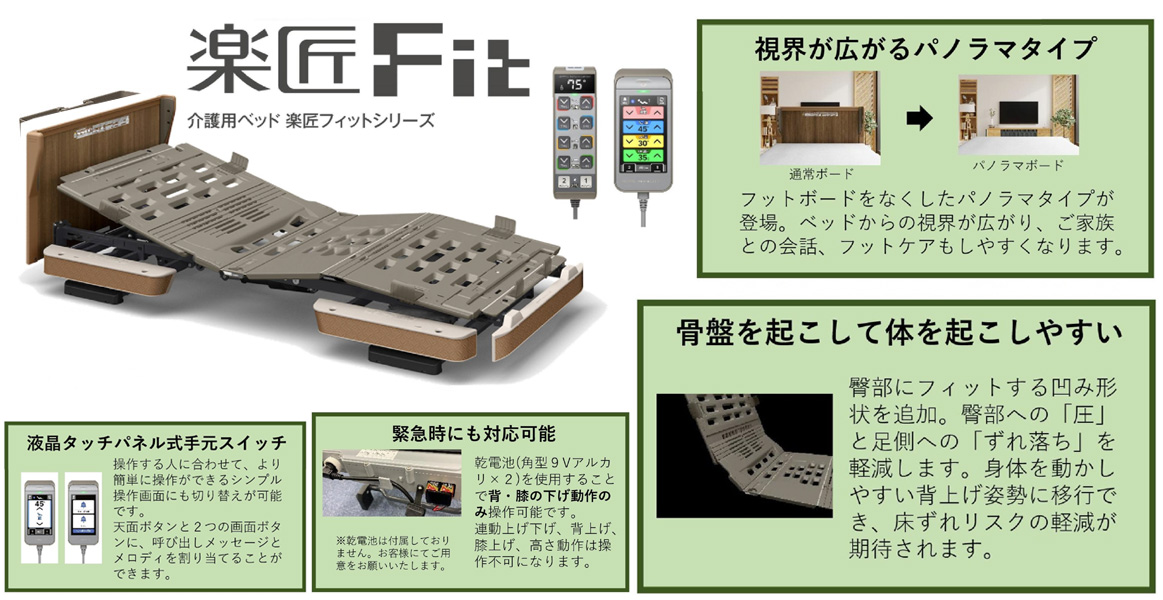 | 特徴 | 身体のずれを軽減するボトムや背あげモーションでより起きあがりたくなる毎日に。使いやすさで選べる手元スイッチやスマートフォンへの呼び出し機能は、ご本人様と介護する方に安心感をお届けします。更に、あなたらしさを選べるラインアップでお部屋を豊かに。あなたのこれからを変える、パラマウントベッドの介護ベッドです。 |
